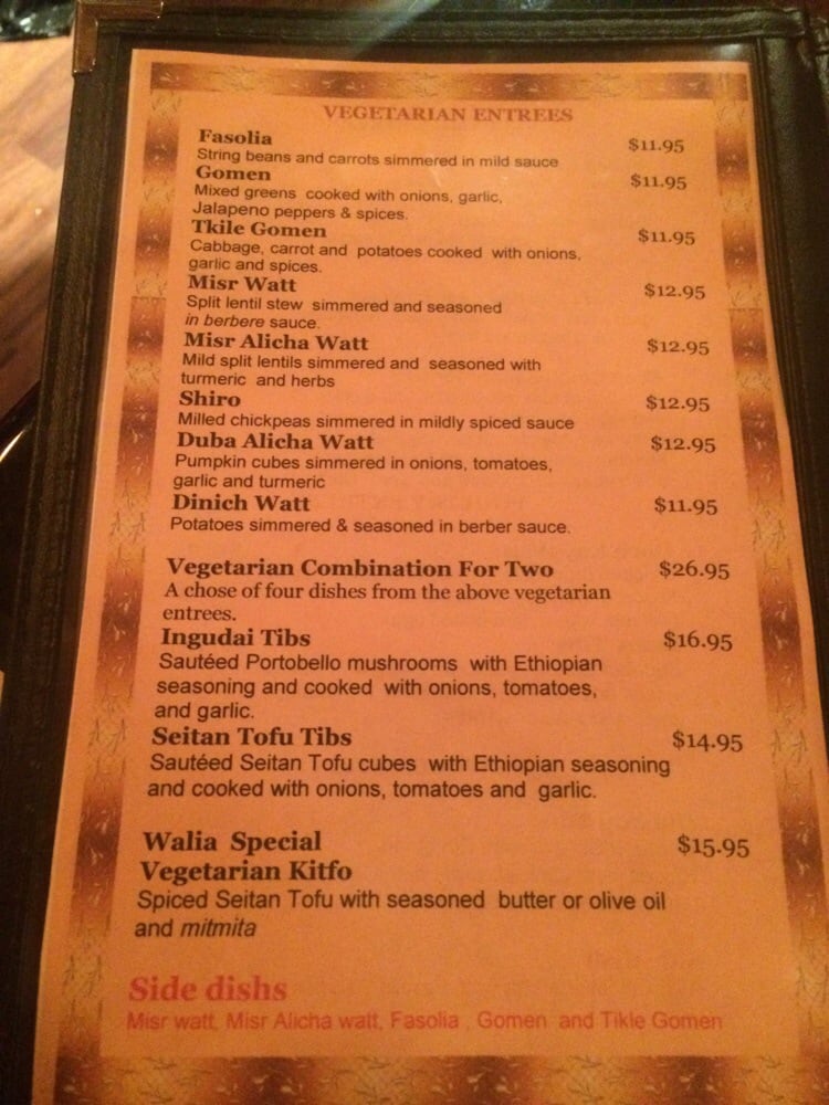 A choice of dishes from the above vegetarian entrees. Add ingudai tibs, seitan tofu tibs for an additional charge.
